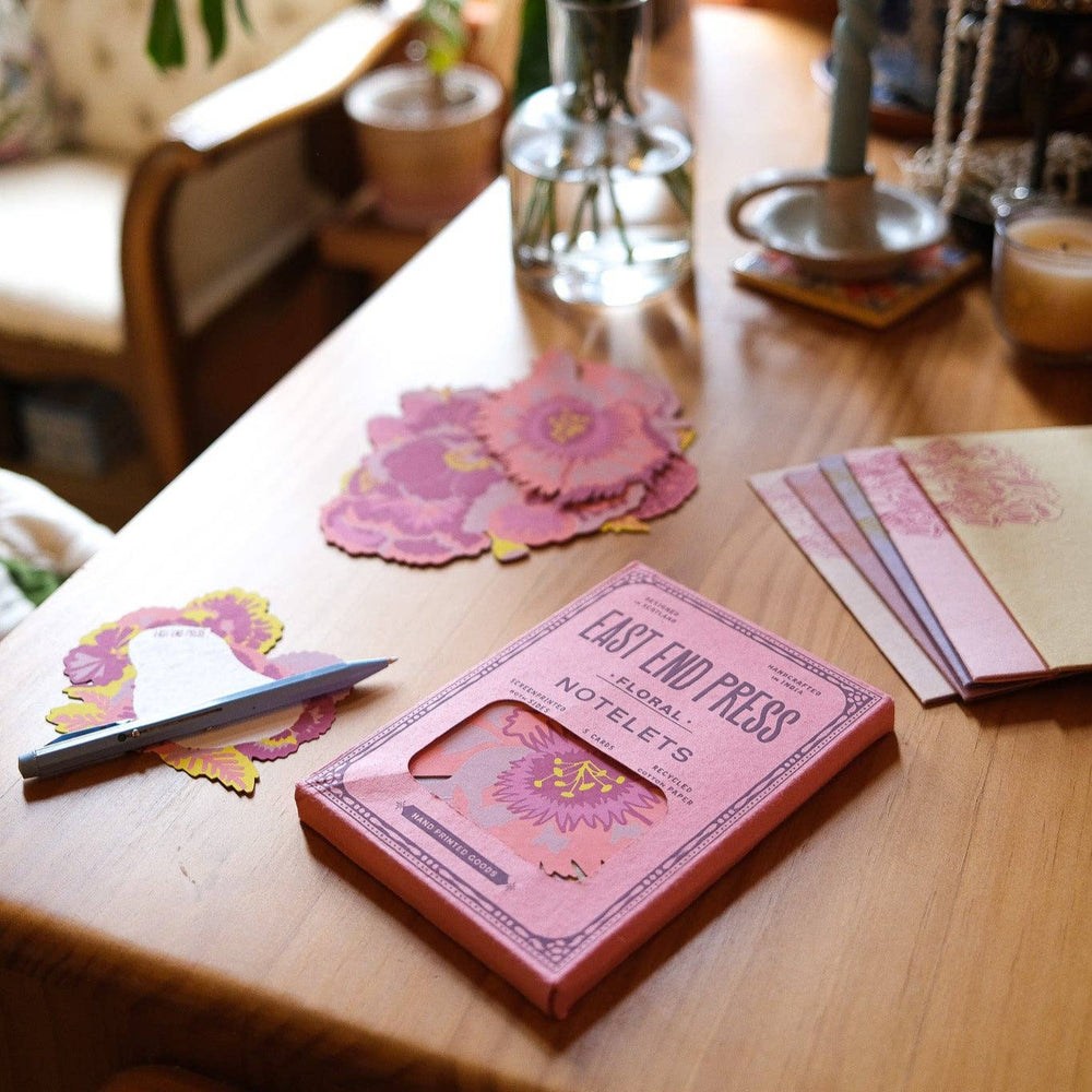 Beautifully printed floral notelets, perfect for letting someone know you’re thinking of them! Includes illustrated envelopes and a small message panel on the reverse of each card.