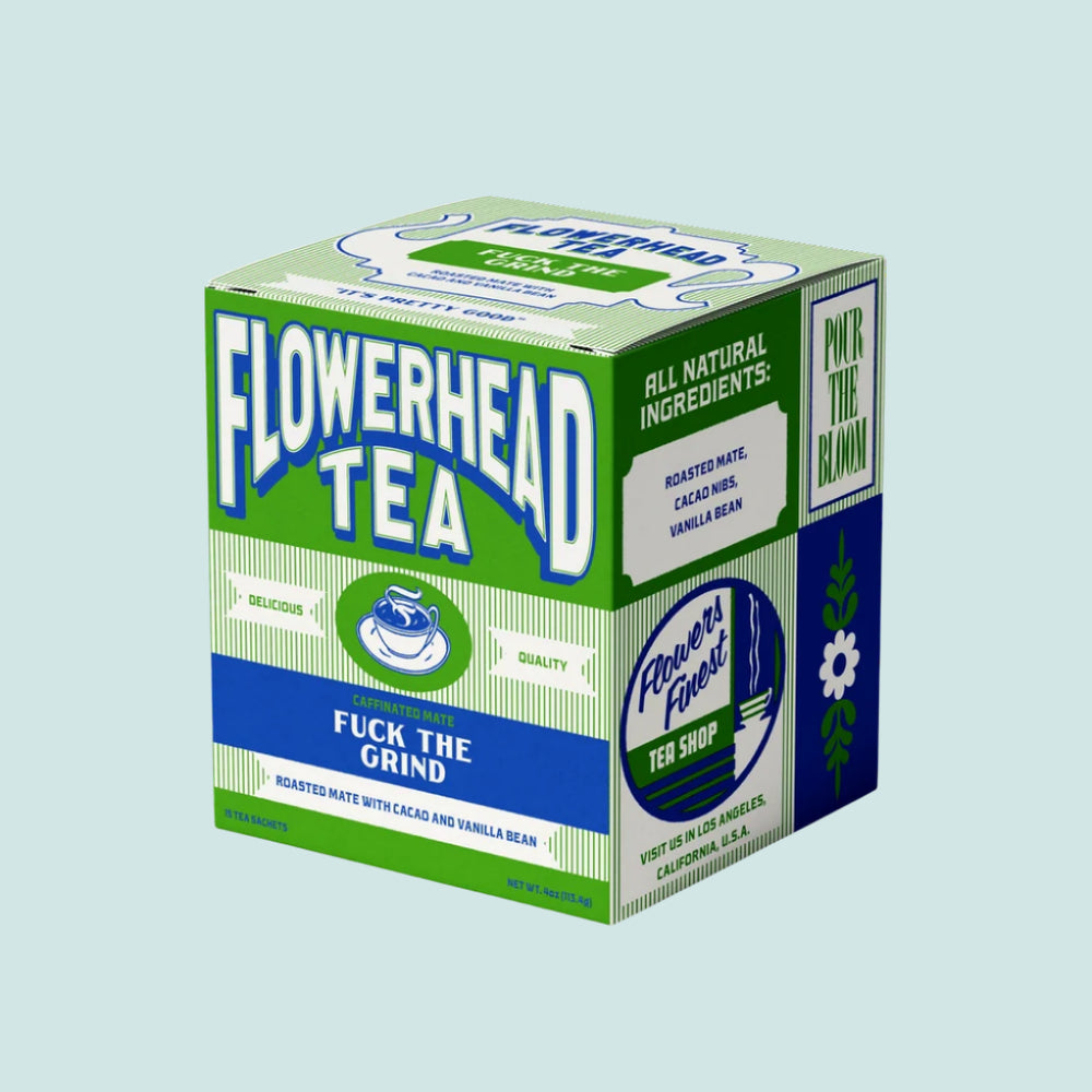 BREAK FREE FROM COFFEE Time to switch up your caffeine routine with this unique and energizing roasted mate tea. F**k the Grind is blended with cacao nibs and vanilla for a rich and malty flavor. Enjoy straight up or with milk and honey. Each 100% recyclable box comes with 15 biodegradable wrapped sachet tea bags. These biodegradable woven mesh tea bags are made from soilon, a plastic-free, non-toxic, environmentally friendly material.