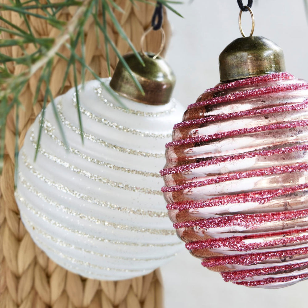 Lolli Soft Pink & White Glitter Baubles | Set of 6