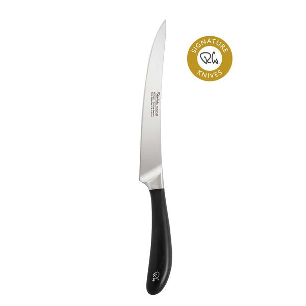 The Signature Carving Knife features a long curved blade, which enables the user to cut fine delicate slices of meat, poultry and fish in a single stroke. Fully forged from German DIN 1.4116 stainless steel, with a full tang for extra strength