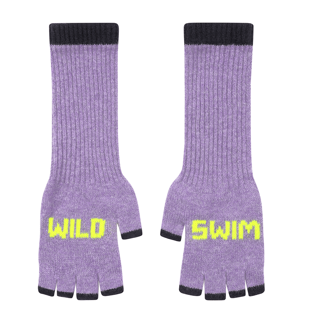 Wild Swim Merino Fingerless Gloves in Parma Violet & Neon Yellow