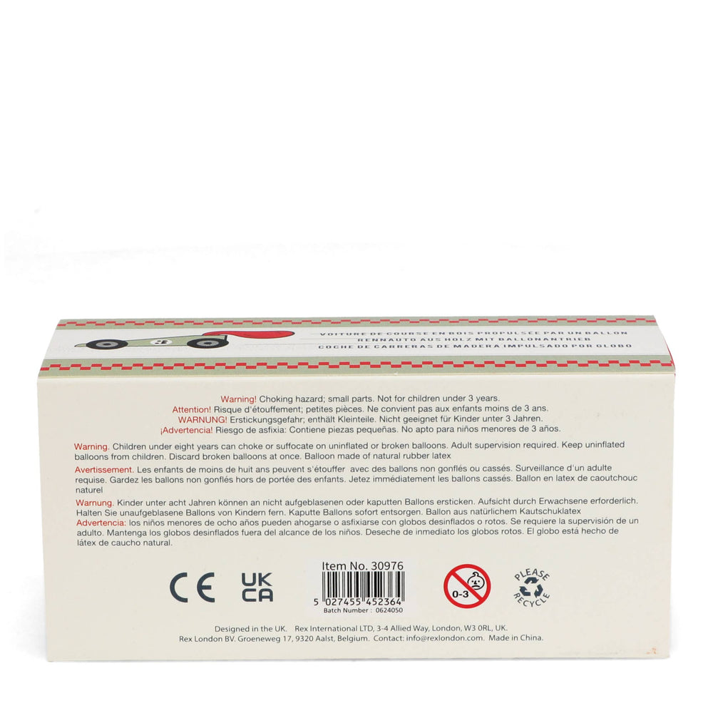 Simple wooden car toy that uses the power of air to propel itself forwards. Simply blow up the integrated balloon full of air, then release the car on a flat surface to send it racing along!