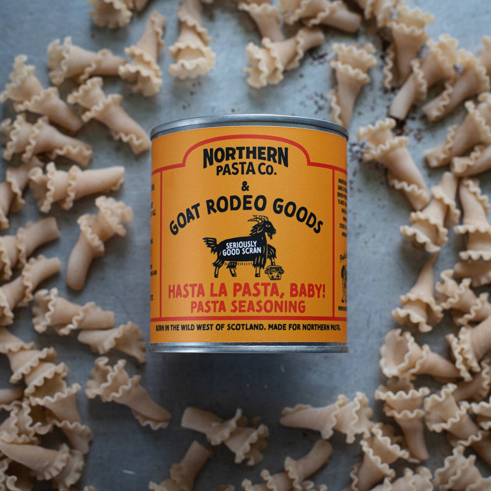The North of England meets the Wild West of Scotland What happens when the wholesome craft of the Northern Pasta Co. meets the untamed creativity of Goat Rodeo Goods? You get a versatile, bold and punchy pasta seasoning that’s full of character and a power move on the pallet. It’s packed with fennel seeds, herbs and the perfect spicy mama heat of Aleppo pepper. This pantry essential is simply made for those who want to eat well, effortlessly. Just add pasta, baby! United by a shared belief in elevating every day food, intentional design and the pursuit of ultimate flavour, this is culinary co-creation