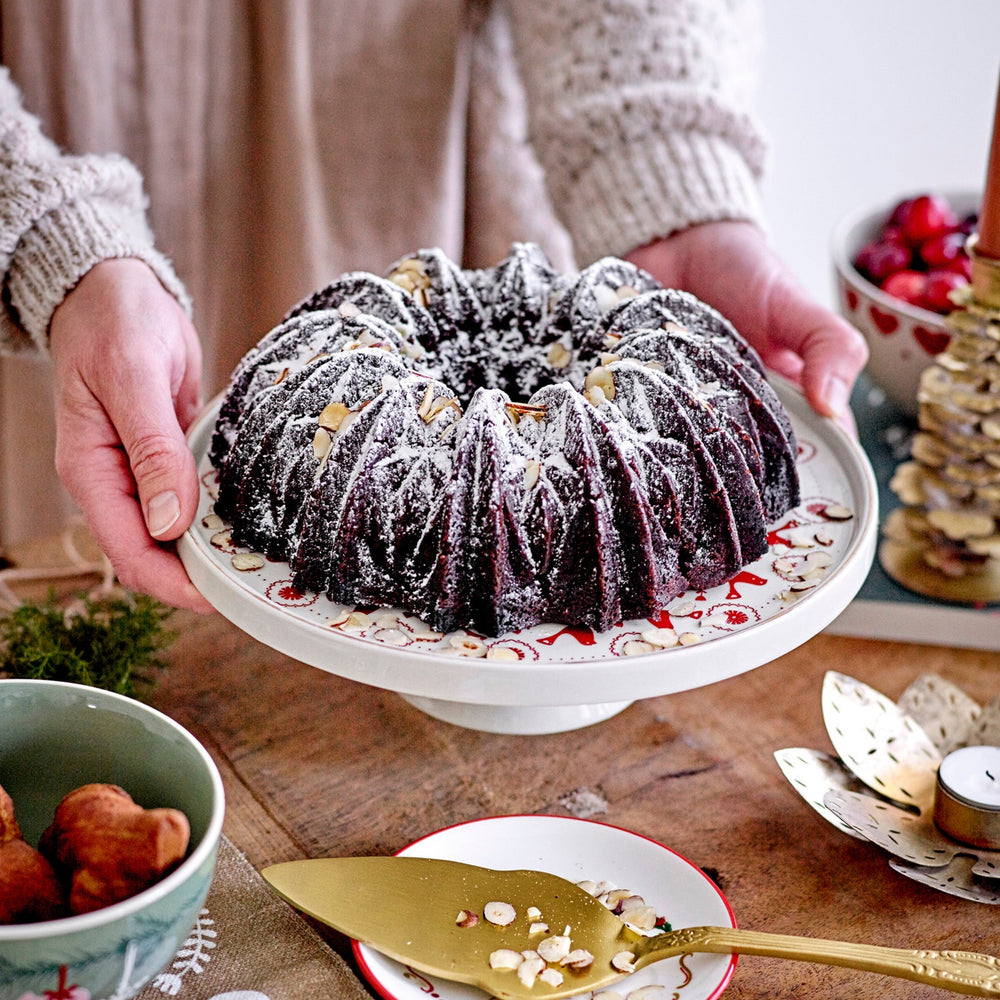 The Jolly Christmas Cake Tray by Bloomingville is a perfect gift for anyone who loves baking. The white tray is painted with pattern of hearts and turtle doves in red. This cake tray will be a great addition to your kitchen decor and it will make every cake or pastries look even more delicious.