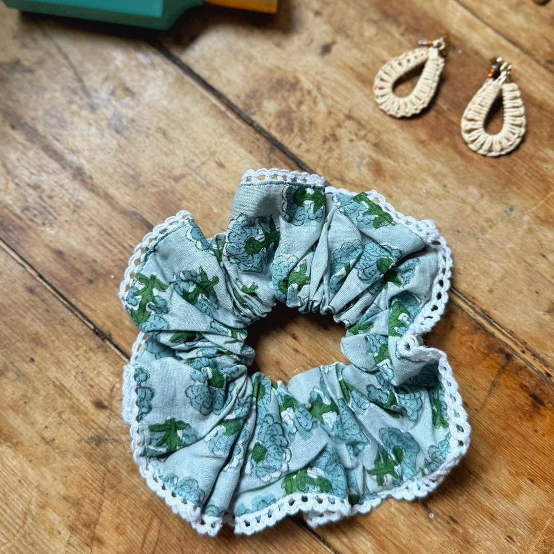 Blooming Trellis Block Printed Ruffled Cushion Cover