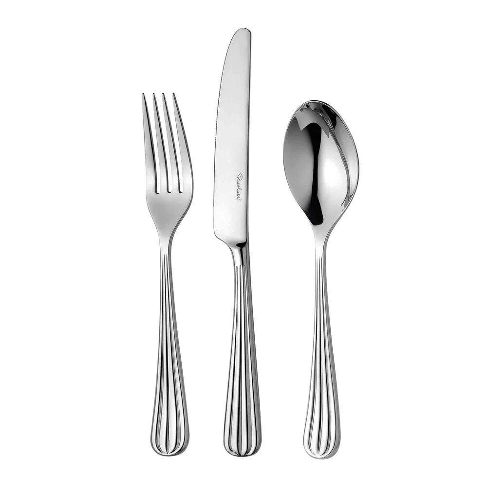 Palm Bright cutlery takes its inspiration from the pattern of the leaves on the tropical tree. The long inscribed flutes dividing up each handle draw on this, playing with the distribution of light and shade. These features are soft in the hand whilst enhancing the elegant profile of each classically proportioned piece on the table .