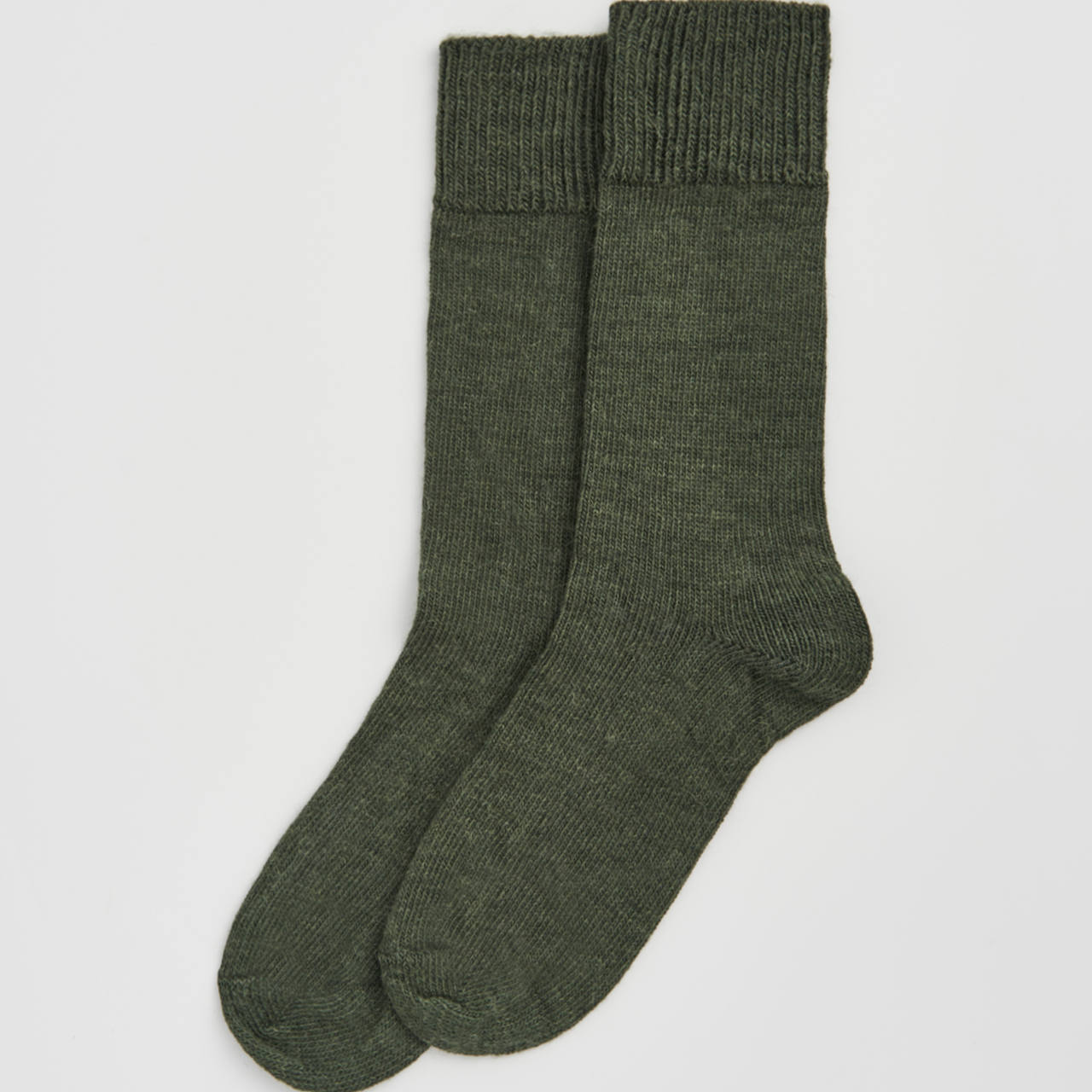 Beautifully soft, warm and hypoallergenic: calf-length Alpaca socks. Upgrade your sock drawer. A strong green reminiscent of Scottish glens.