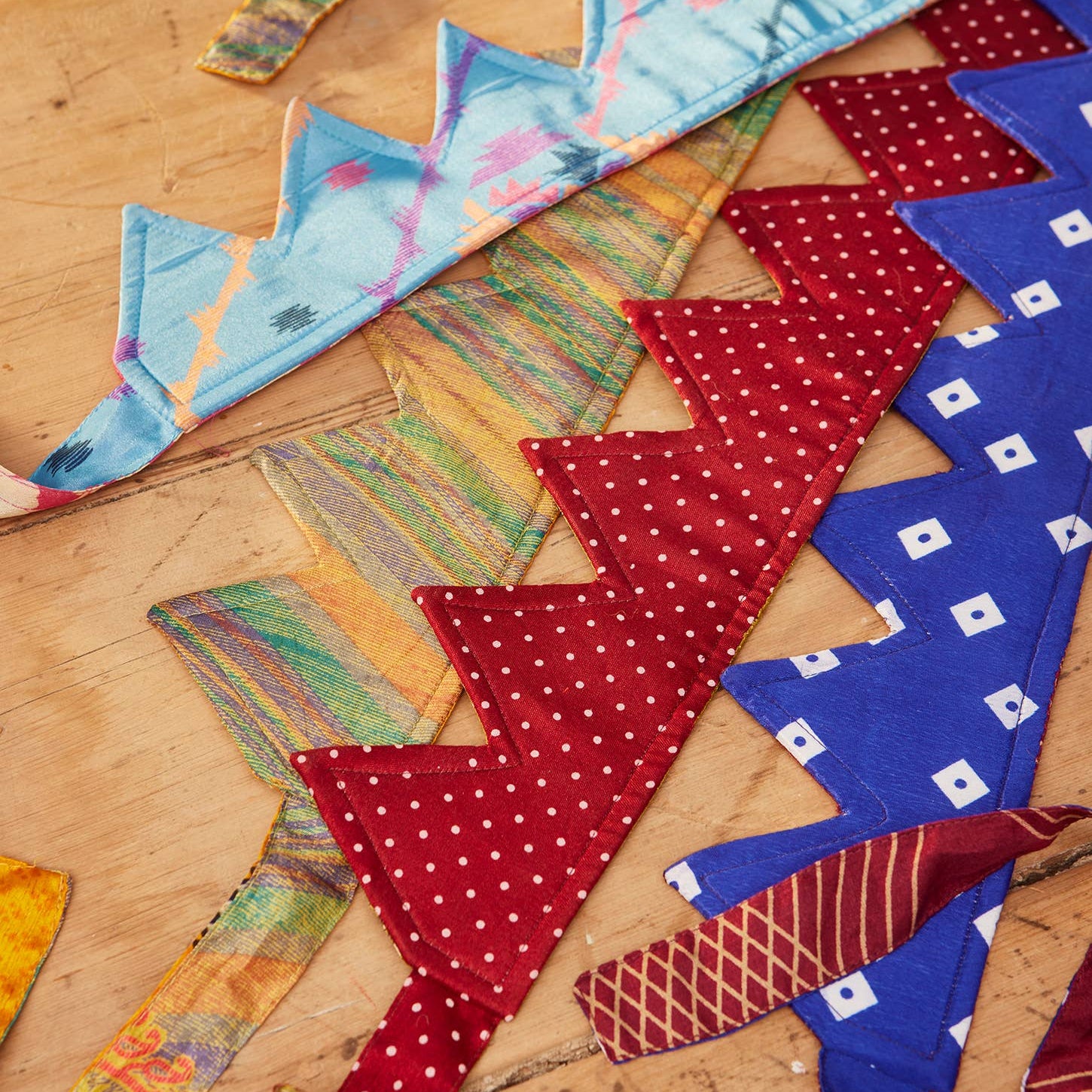 Recycled sari remnants, off-cuts and surpluses arrive at our suppliers in assorted mixed batches. They contain lightweight, airy fabrics traditionally used for making sarees. Every purchase prevents careless disposal of resources in circulation and promotes recycling and upcycling.