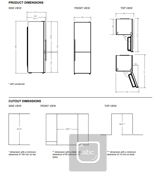 - Refrigerator shelves: 3 Height-adjustable + 1 Stationary