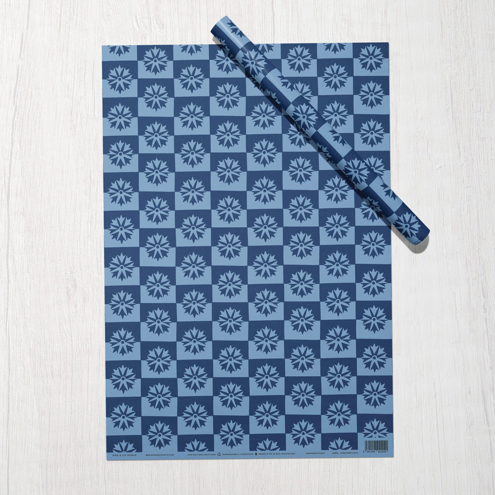 Cornflower Checkered Recycled Gift Wrap