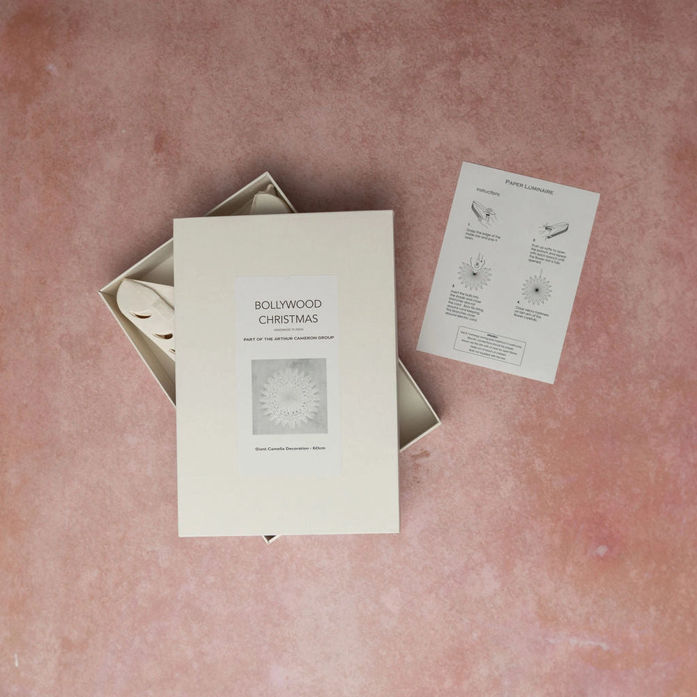 Made from a heavy duty white paper, before being assembled by hand. This is a beautiful eye catching decoration that can be hung anywhere indoors, using a command hook or similarly using the pull cords. The design is the same on both sides.