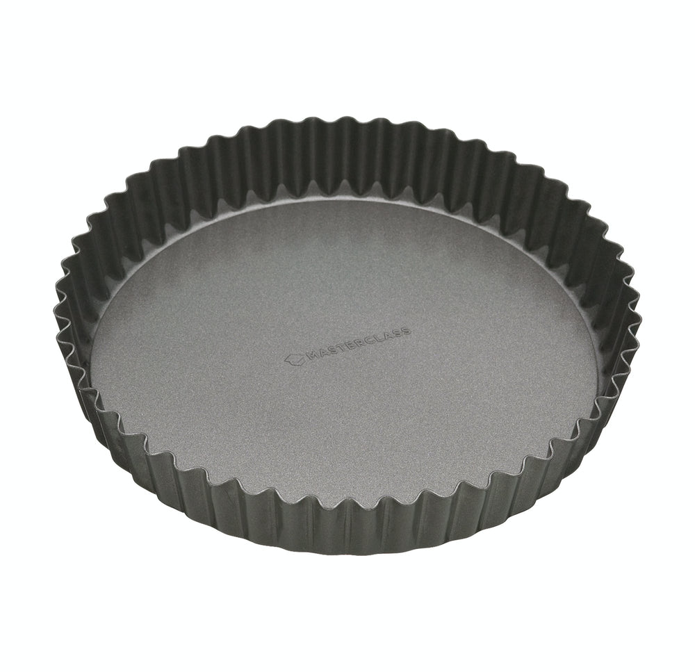 Make delicious quiches, flans and tarts with this heavy duty, non stick quiche tin. With fluted sides and a loose base, this round flan tin forms part of the MasterClass award winning bakeware collection that guarantees many years of satisfying cooking and baking.
