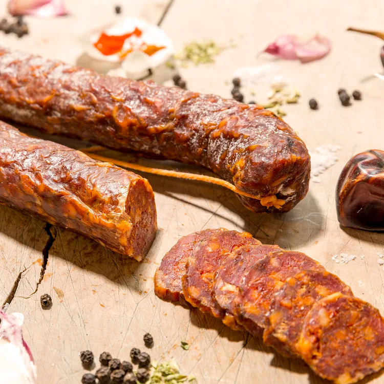 The East Coast Cured take on a Spanish classic — bold, aromatic, and bursting with flavour. Seasoned with our special blend of spices, a few herbs, and a splash of red wine and bourbon, this chorizo packs a punch.