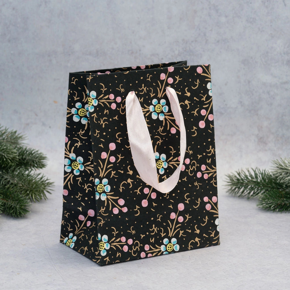Black Recycled Floral Paper Gift Bag - 3 Sizes