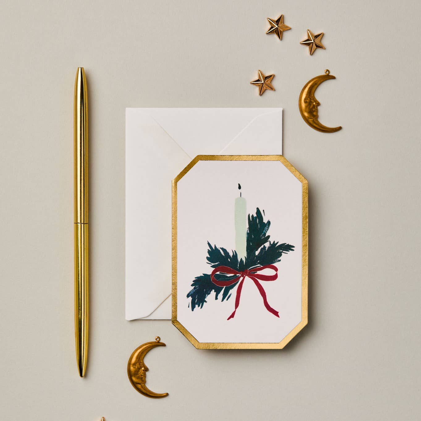 Christmas Candle Botanical Die Cut Mini Card