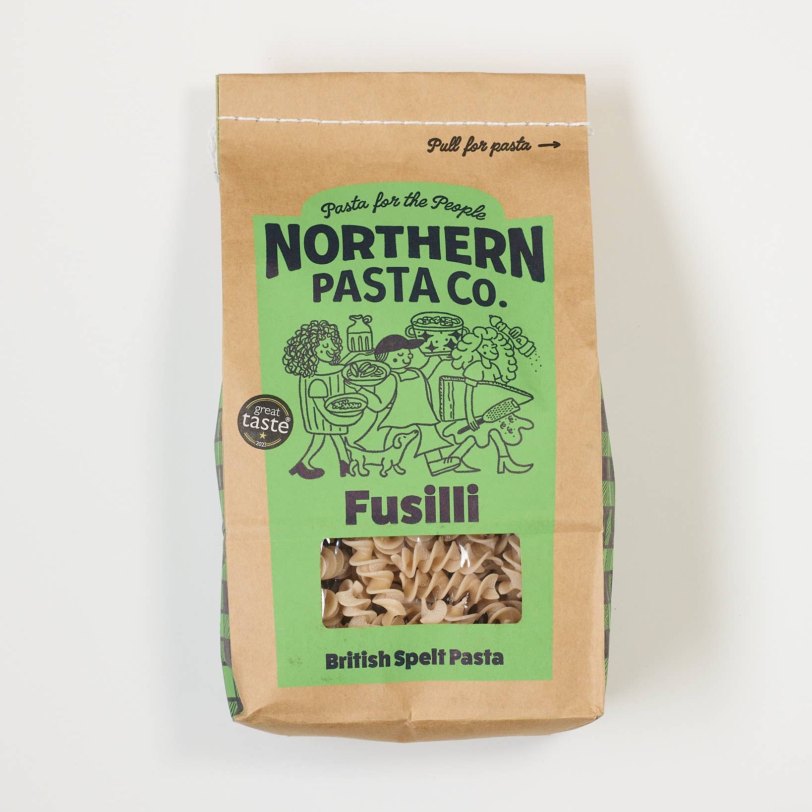 Our award-winning Fusilli. This much loved family favourite has the most incredible texture, for the perfect, most comforting mouthful, every time. Crafted consciously using traditional Italians methods and with our beautiful British spelt; Northern Pasta Fusilli is unbeatably delicious. We craft all Northern Pasta at our small but mighty Pasta HQ in Cumbria, with our signature blend of regeneratively grown British Spelt. We use Bronze Dies to give our pasta incredible texture & dry it slowly at low temperatures to enhance the delicious nutty flavour & take care of the high-quality ingredients we use.