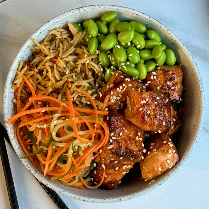 Cooked Basmati Rice (70%) (Water, Basmati Rice), Coconut Cream (10%), Red Pepper, Mango Puree, Sunflower Oil, Lemongrass (2%), Soy Sauce (Water, Soya Beans, Salt, Alcohol), Coriander, Ginger Puree, Basil, Desiccated coconut, Salt, Red Chilli, Lime Leaf, Lime Zest, Garlic, Stabiliser (Guar Gum), Ginger.