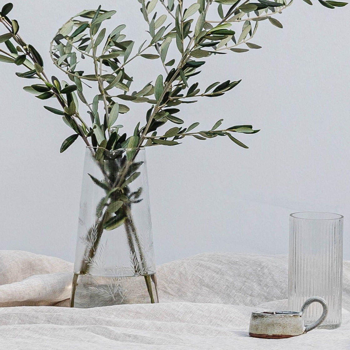 A beautiful hand blown etched glass jug.