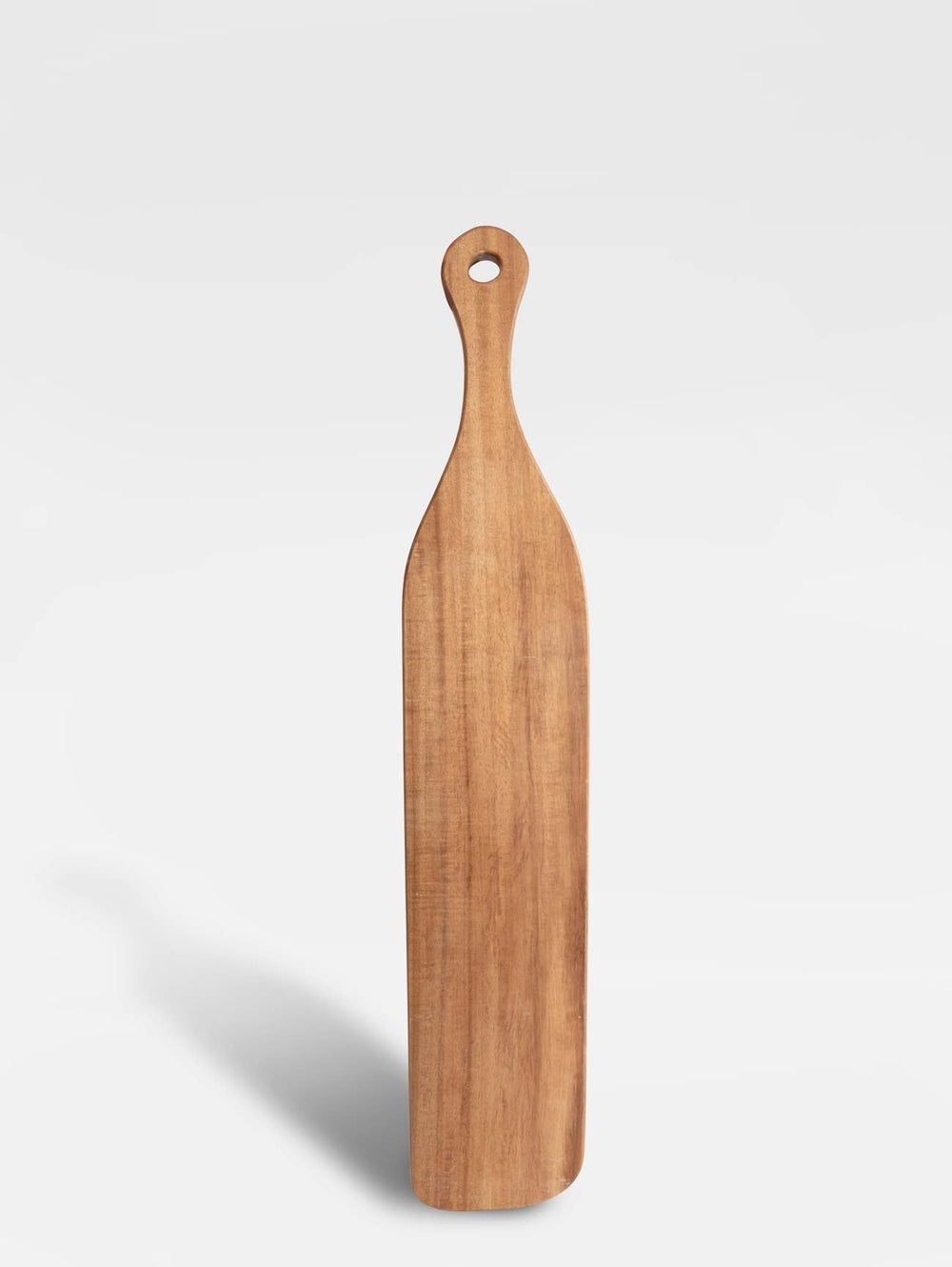 A organic shaped natural acacia wood chopping board and serving paddle.