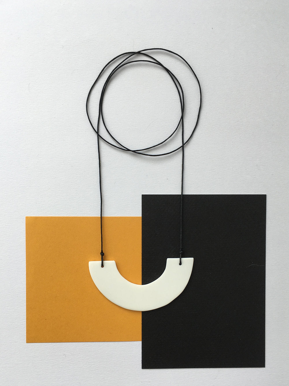 Warm flecks of shiny copper lustre contrast with a base of ultra smooth Parian porcelain clay. The Fleck Necklace makes a bold, yet subtle, addition to any outfit. At first glance the Fleck Necklace might look monochromatic but, as soon as the light hits it, the copper details spring to life and pop against the matte background.