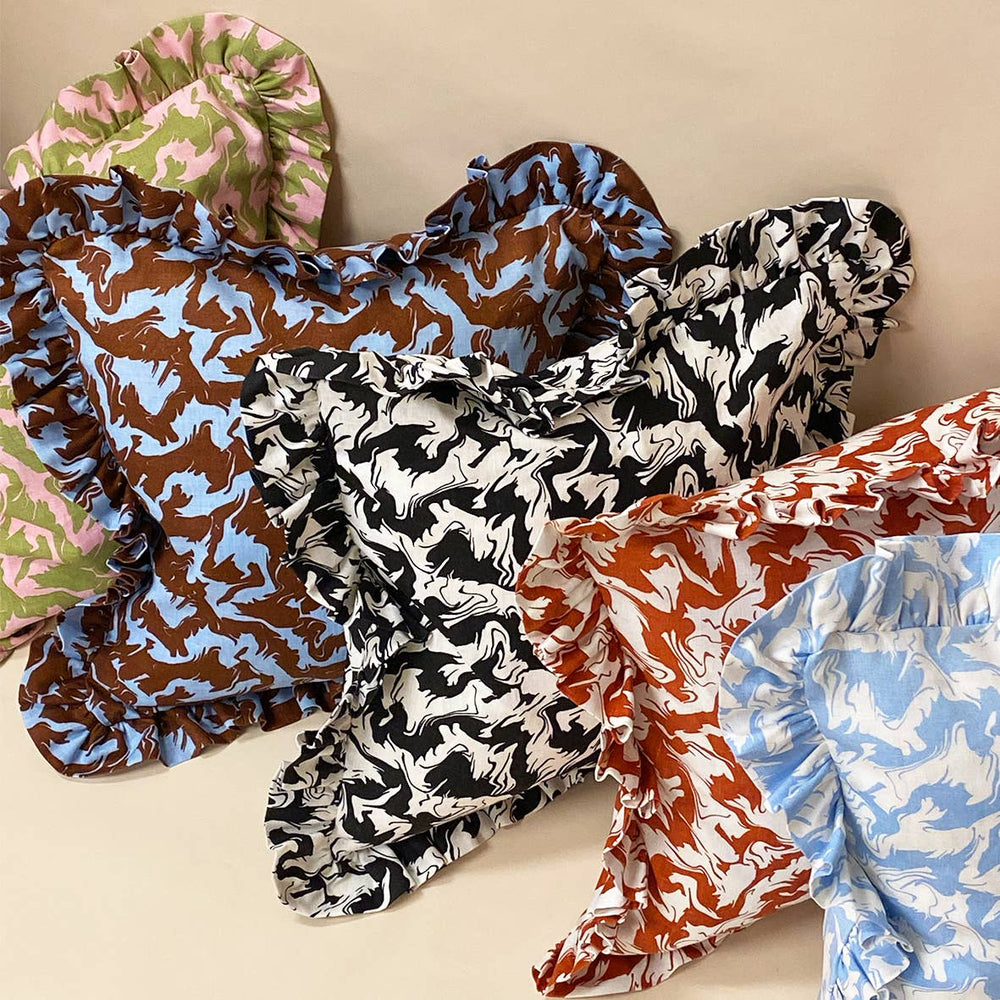 - Main body measures 45x45cm, 60cm with ruffling (we like to fill with a 50x50cm down inner) Fastened with hidden zip on the reverse side.