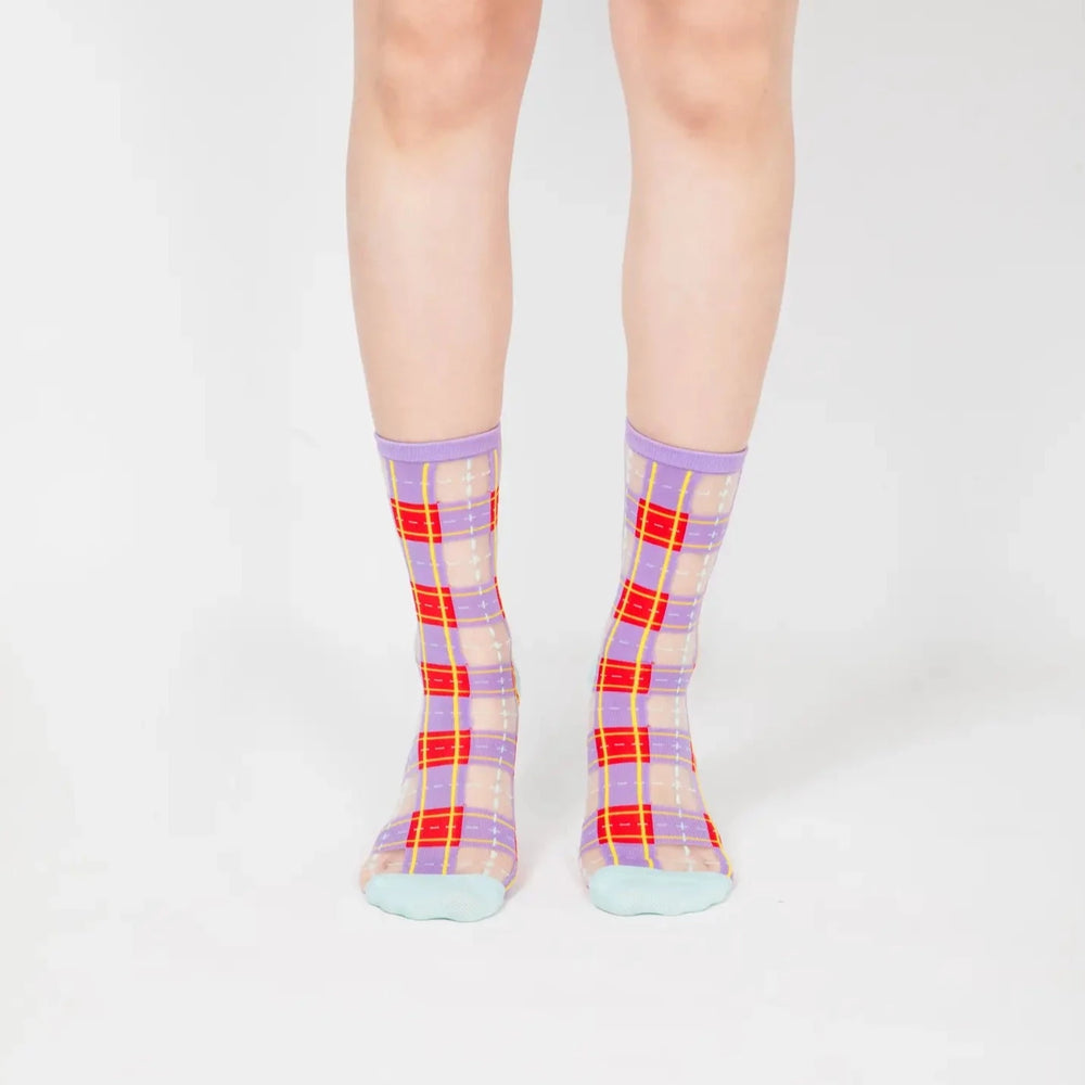 Tartan Sheer Sock - Purple & Red
