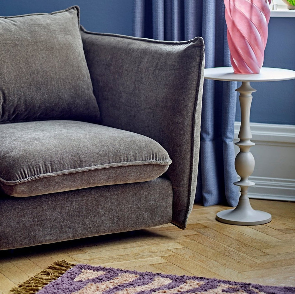 The Annan Side Table by Bloomingville is made of gray aluminum, with a minimalist design that fits into any home. The table leg is crafted with beautiful details, complemented by the otherwise minimalist expression.