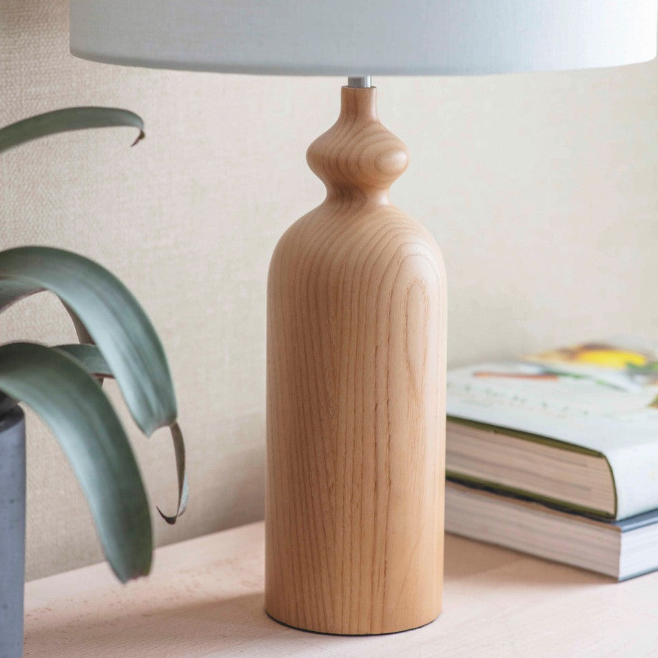 Carved from ash with a striking organic shape, the Bloomsbury Table Lamp is perfect for dressing bedsides, consoles and side tables. We've matched the natural base with a Lily White drum shade to give a soft diffused glow to whichever room it's placed in.