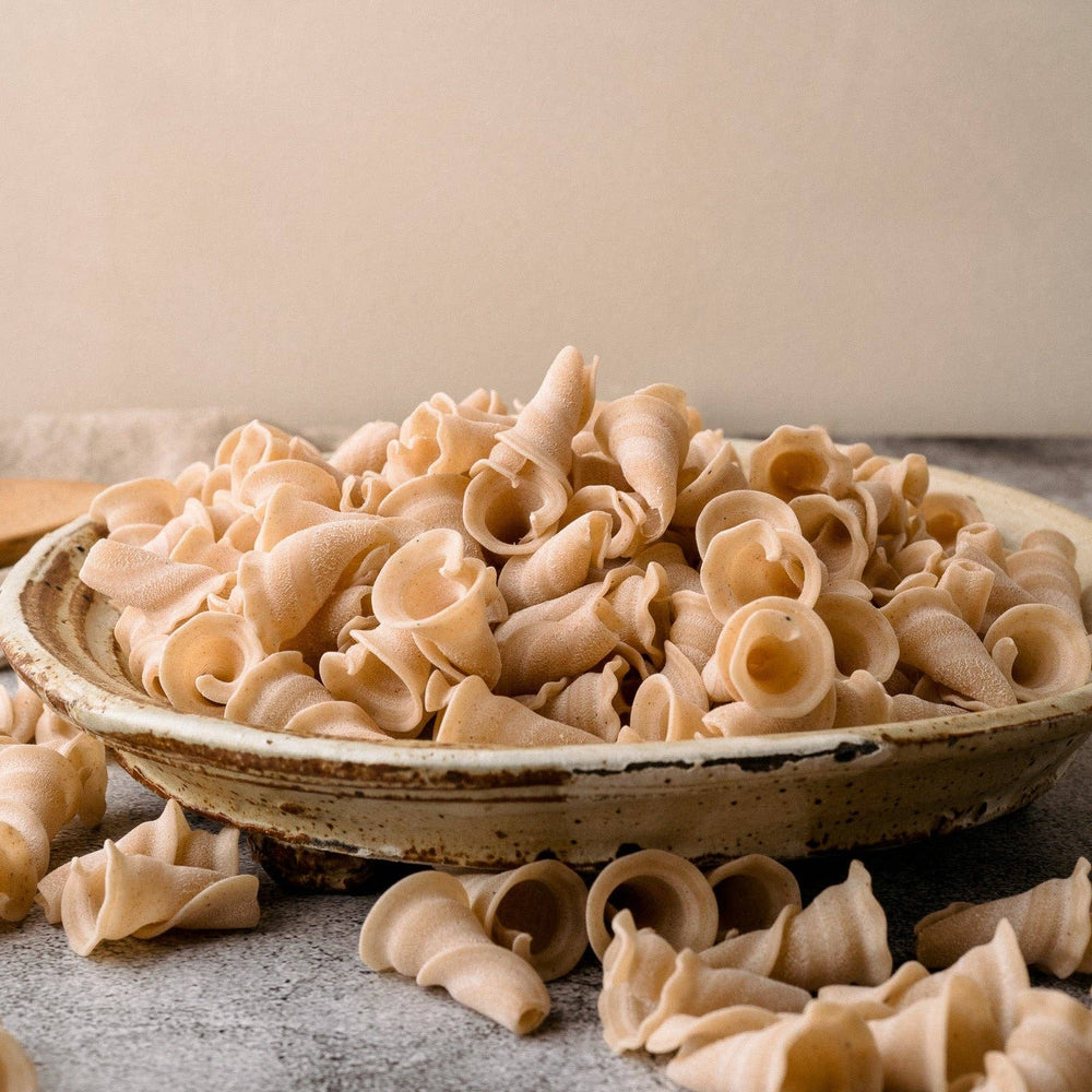 Award-winning Gigli, is almost too pretty to eat, almost! It's beautiful flower-like shape is perfect for holding creamier sauces and pestos while making your dish look (and taste!) next level. Crafted consciously using traditional Italians methods and with beautiful British spelt; Northern Pasta Gigli is unbeatably delicious. Northern Pasta is crafted at the small but mighty Pasta HQ in Cumbria, with a signature blend of regeneratively grown British Spelt. They use Bronze Dies to give our pasta incredible texture & dry it slowly at low temperatures to enhance the delicious nutty flavour & take care of the high-quality ingredients.