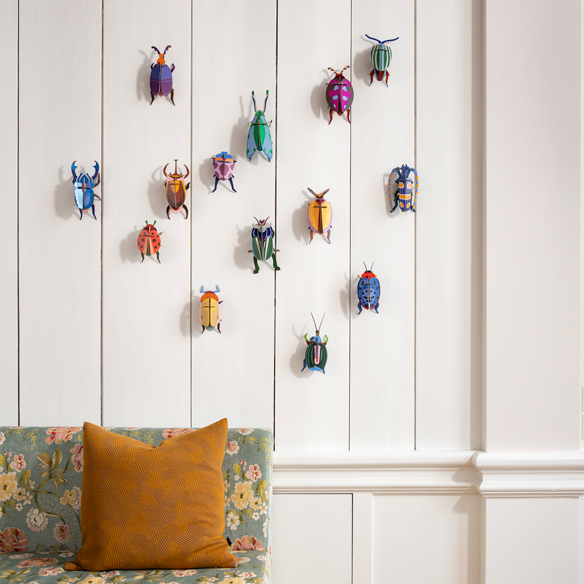 As small as they may be, insects are of great importance for the earth’s vitality. How extraordinary that they can now also tell their story in your home! Printed on recycled cardboard using vegetable ink, these colourful creatures with their bright graphic patterns allow you to add a little beauty to both your home and the world.