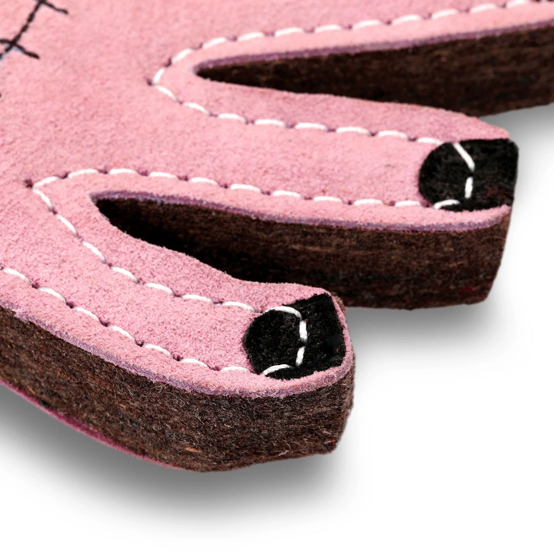 Spooky and sustainable fun for dogs of all ages! The Hand is made from layers of compressed felt stitched over with soft suede and natural jute rope. The suede is a by-product, ensuring that this material is not wasted, and jute is a plant material that's sustainable and biodegradable. Wool felt is biodegradable too.