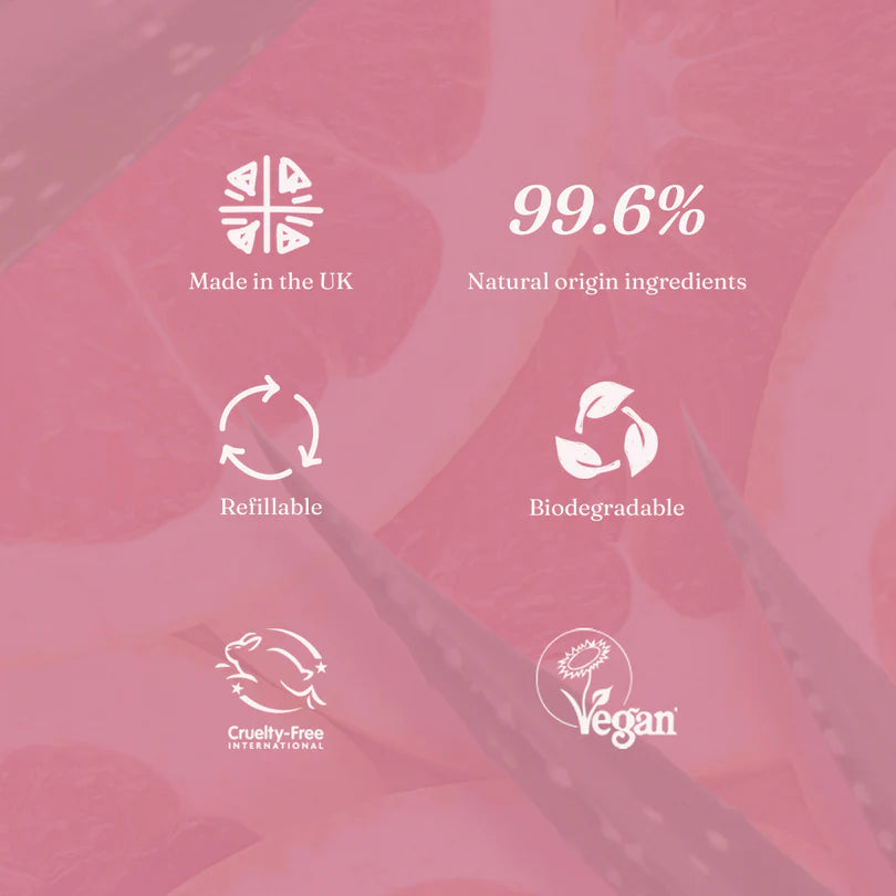 - Natural and subtle pink grapefruit fragrance.