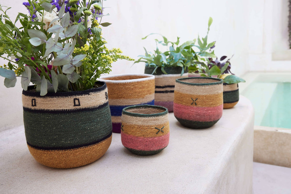 Bohemian-style seagrass baskets. We love these bohemian-style baskets made from 100% natural materials. These baskets have been handwoven using artisanal techniques, making them "unique" and enhanced with fancy stripes in subtle colors typical of our bohemian brand. We have also added some "hand embroidery" that is an integral part of our brand's DNA. This lovely range of baskets, rich in colors, patterns, sizes, and details, will bring a colorful and bohemian touch to your interior. Use them as pot holders, kitchen utensils, or simply to store your laundry.