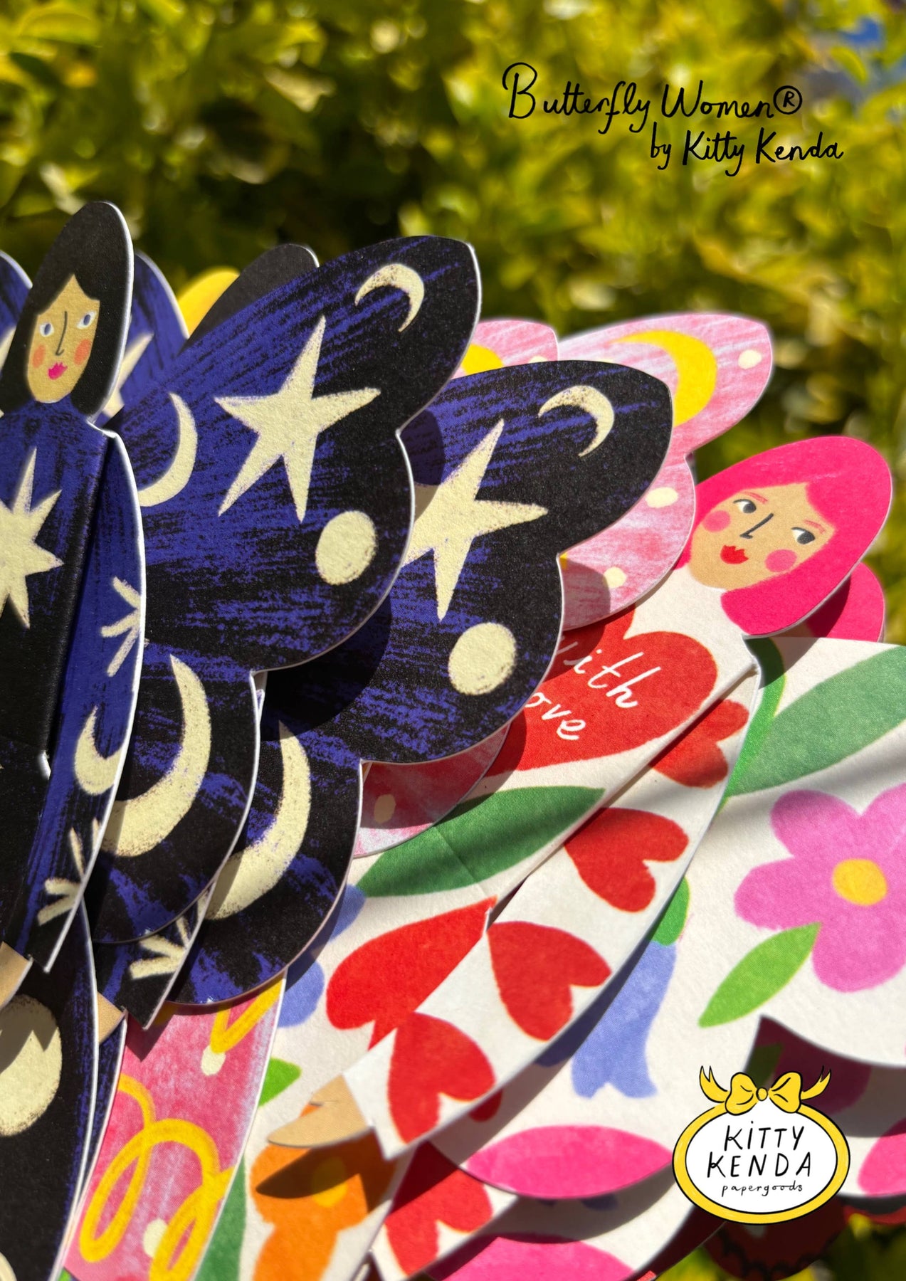 Meet the Butterfly Women® Sitting Card — part of our enchanting new SITTING CARD range. An exclusive, protected design by Kitty Kenda Papergoods (® January 2025), this is no ordinary card but a miniature paper sculpture designed to be kept and displayed long after the message is read.