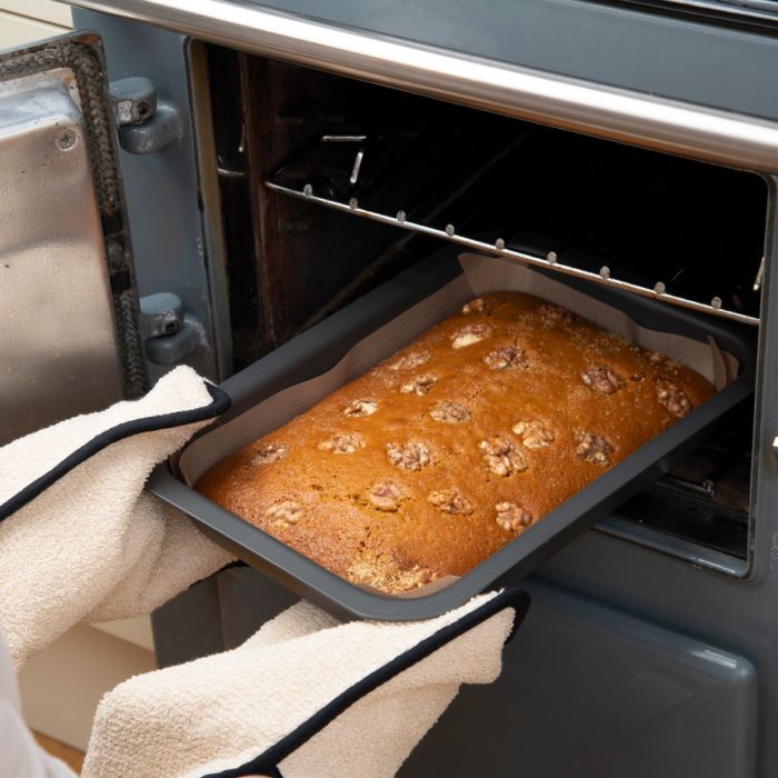 Used for roasting, grilling (with the grill rack inside) or cooking traybake cakes, two half-size tins will fit one in front of the other in the AGA ovens.