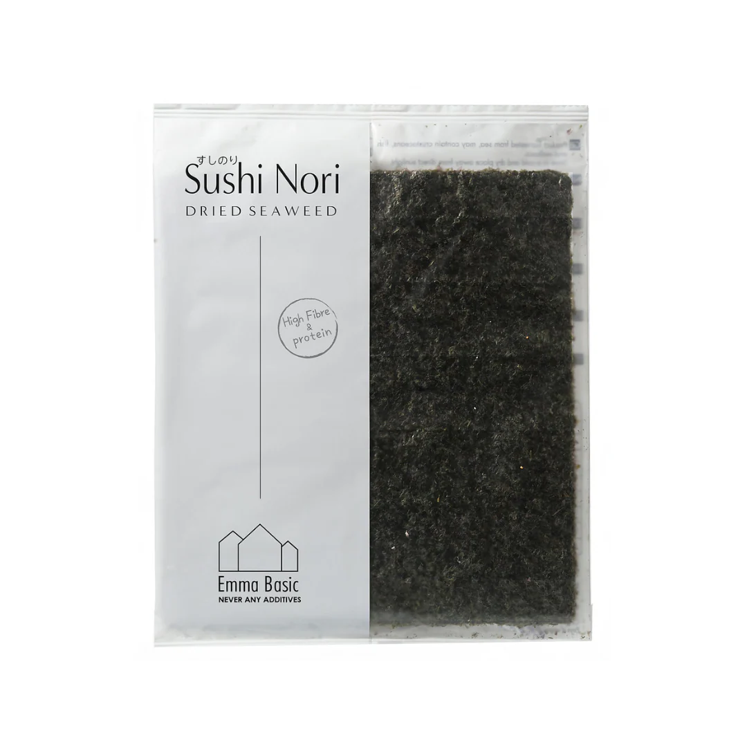 Emma Basic Nori is made from raw material harvested at the beginning of the season to ensure the texture is not too chewing, it's high in protein and fibre