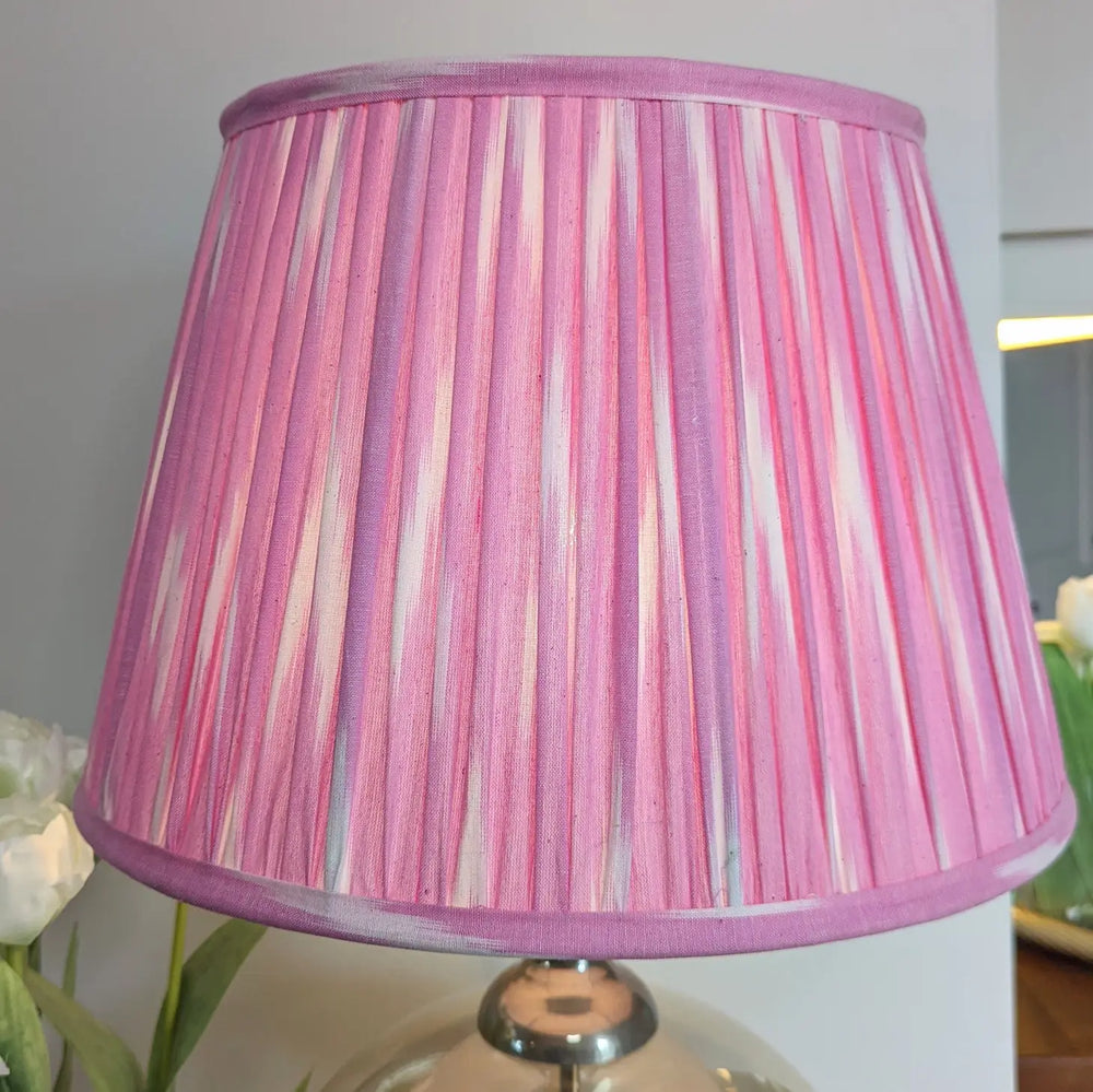 This beautifully handblocked printed cotton fabric was made in Jaipur and has been fashioned into these stunning handmade lamp shades, this design is a real showstopper. The vibrant pink would look equally beautiful in a living or bedroom setting.