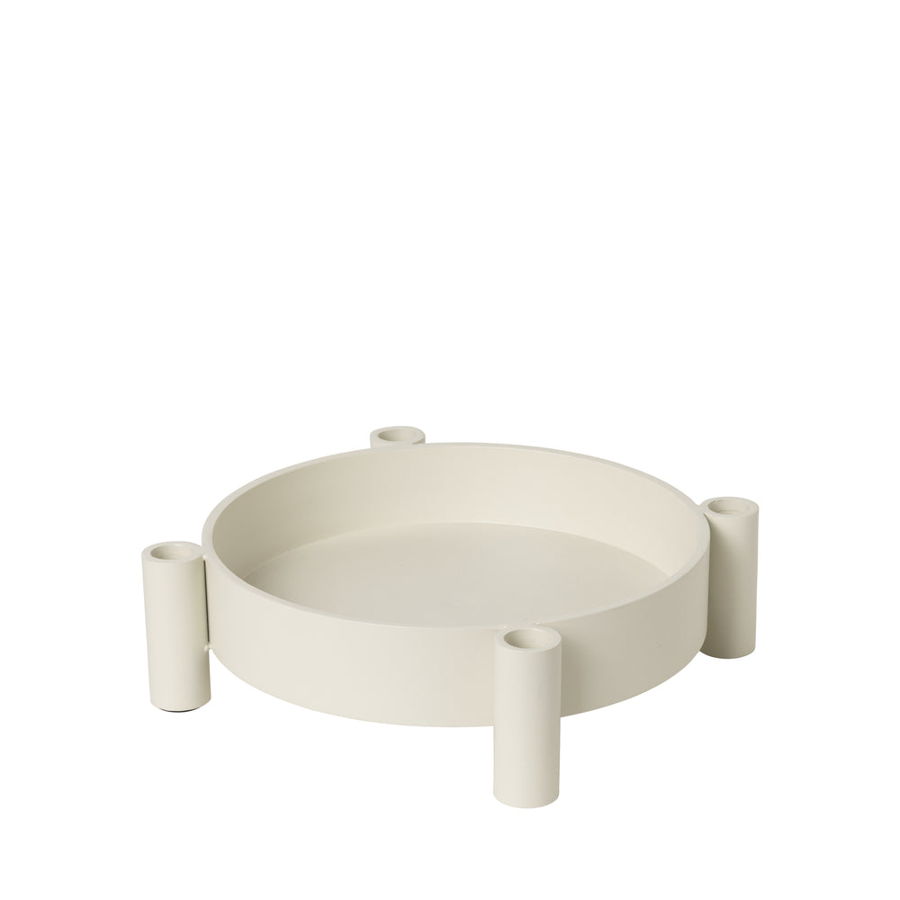 Our Silke candle holder is designed with a central bowl for displaying fruit, trinkets and other items while holding 4 candles around the edge. Made from heavy iron and powder coated in a very soft warm white, this piece is built to last and can be used all year round.