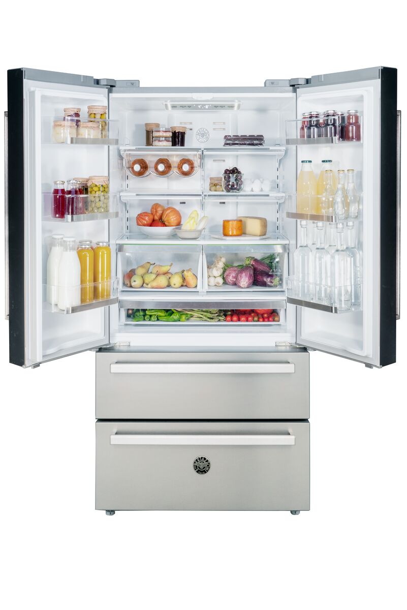 With the included Professional Series handles set, this refrigerator complements beautifully any Bertazzoni Professional Series kitchen.