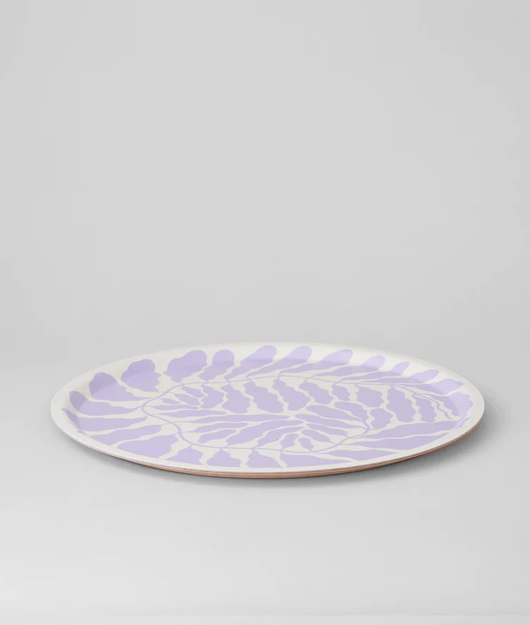 This eye-catching circular tray features Swedish artist Linnéa Andersson’s signature leafy motifs, spiralling out across its surface and is finished in a soft lilac hue.