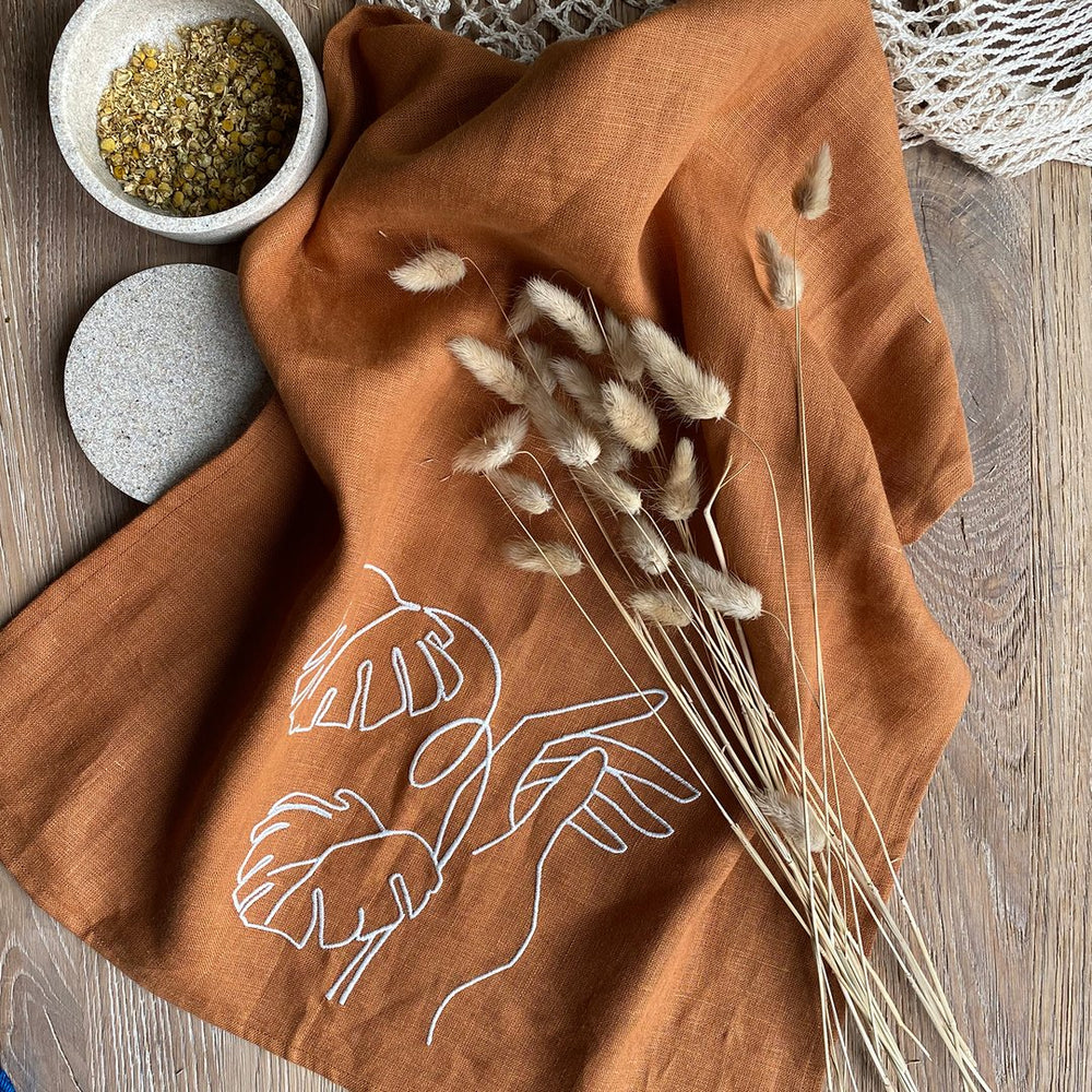 Beautiful tea towel handmade from natural linen fabric with gorgeous embroidery detail.