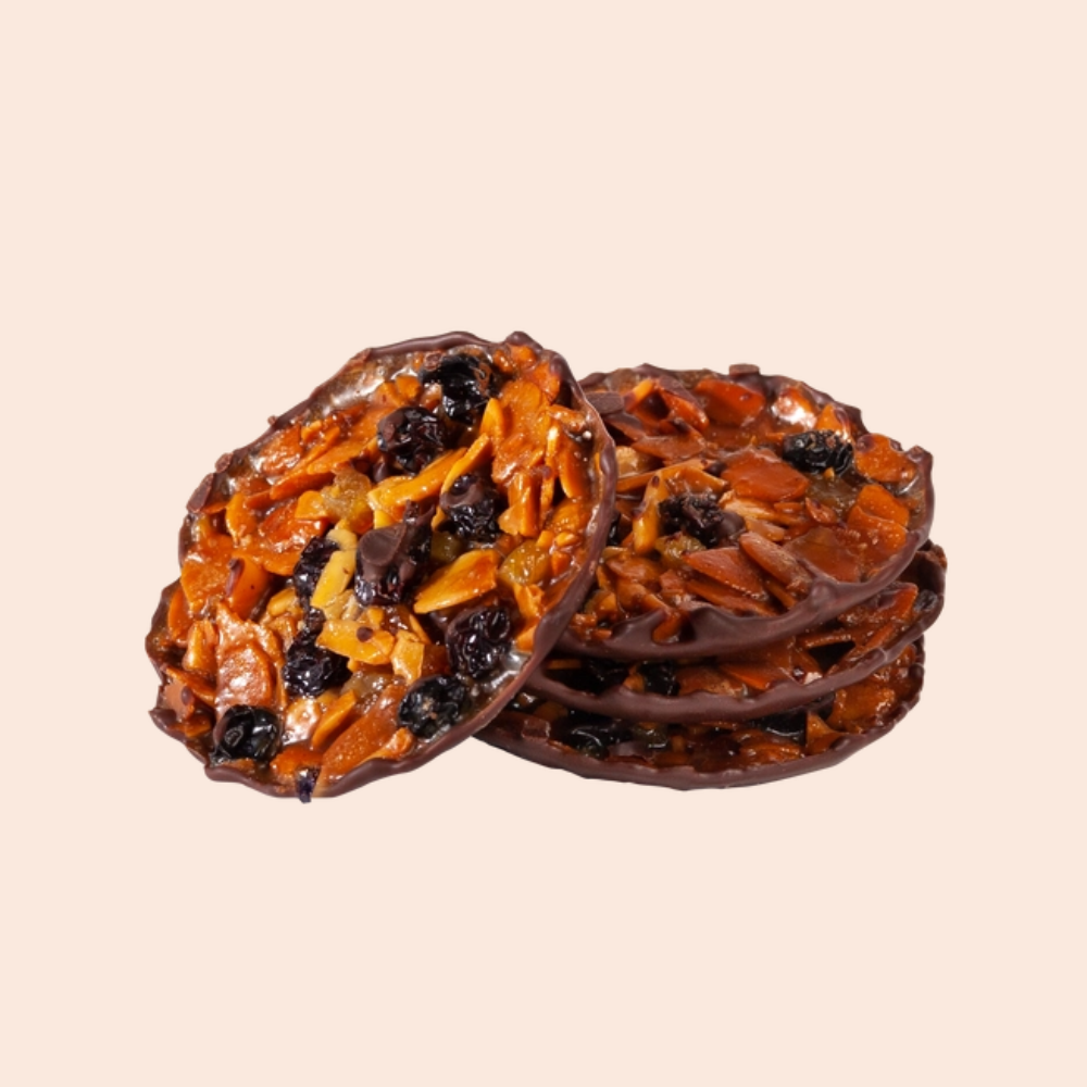 Delicious Florentines made with Salted Butter Caramel and topped with Milk Chocolate.