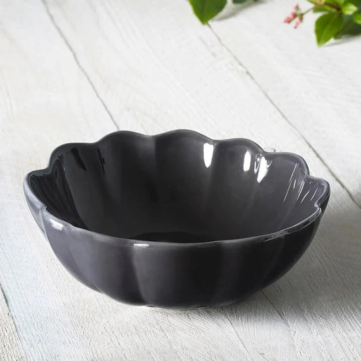 Serve up sophistication with this Scallop Nibble Bowl in a deep charcoal grey tone. Made in Portugal, each item is hand-glazed with a beautiful, translucent, glossy glaze - making each piece unique.
