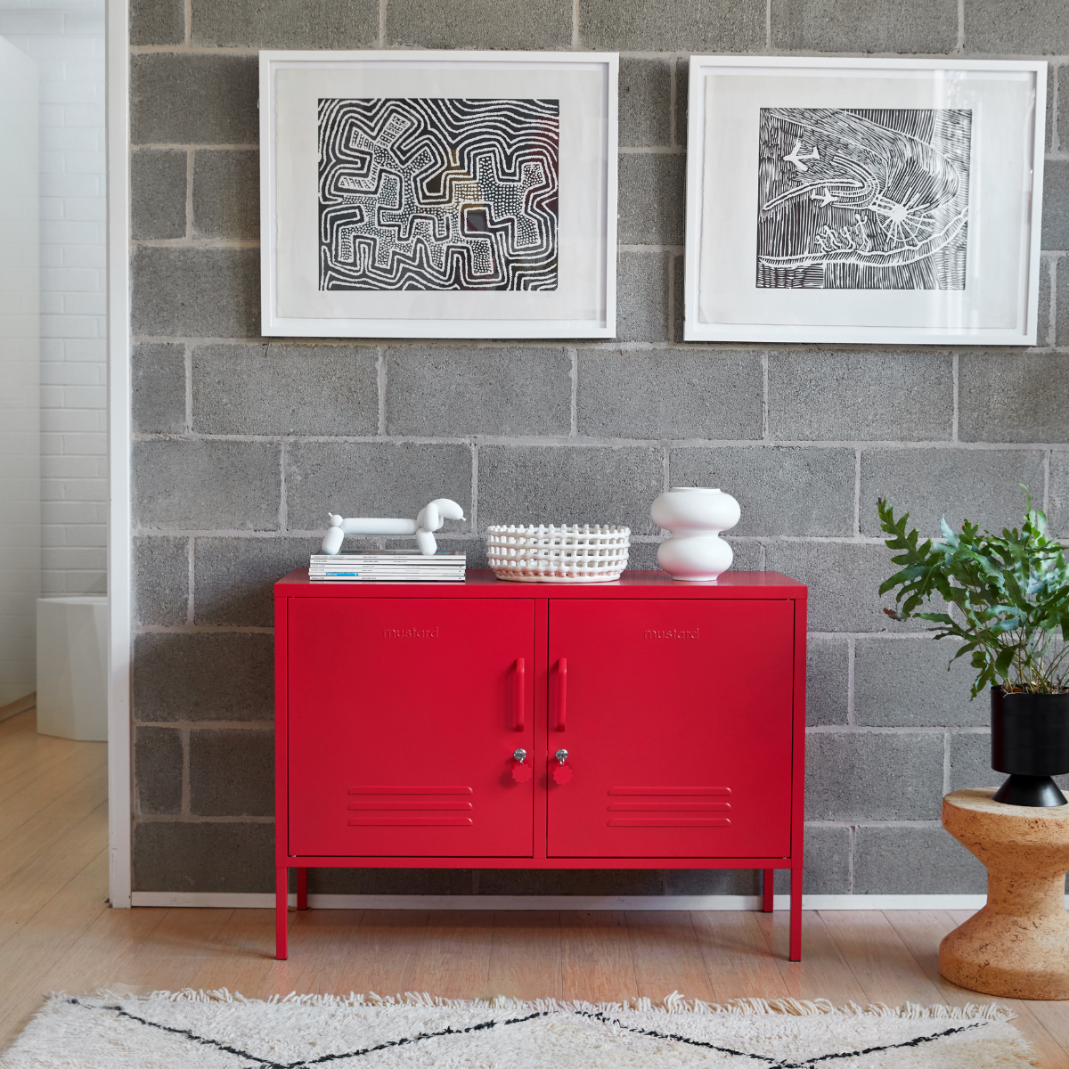 Mustard Made The Midi Locker in slate with a posted above and a lamp sitting on top