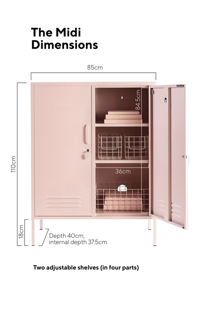 Mustard Made The Midi Locker in blush infront of a white background with the doors closed